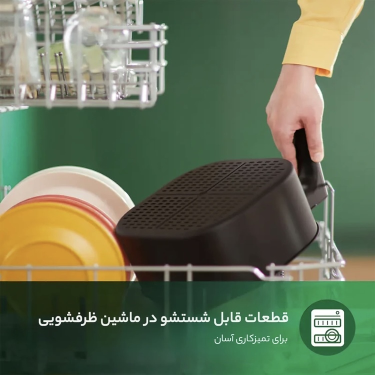 این دستگاه بسیار شیک در دو رنگ سفید و مشکی مات رنگ، بسیار کم صداست. دارای قفل کودک بوده و امکان خاموش کردن خودکار را دارد. دمای دستگاه را میتوان بین 80 تا 200 درجه سانتیگراد تنظیم کرد. این دستگاه از قابلیتهای یخزدایی، گرم نگه داشتن غذا، گریل کردن و سرخ کردن برخوردار است. دارای سبد نچسب و ضدخش بوده و میتوان قطعات آن را در ماشین ظرفشویی شست. گنجایش روغن آن 7 میلیلیتر (برای سرخ کردن بدون روغن) است. از قابلیت پخت به وسیله چرخش هوای گرم برخوردار بوده و دارای8 برنامه پخت از پیش تعیین شده است. دارای برنامه یخزدایی و گرمکردن غذا بوده و مجهز به تکنولوژی Rapid Air (جلوگیریکننده از بو هنگام سرخ کردن و گردش سریع هوا) و فناوری پخش سریع و یکنواخت حرارت در محفظه غذا است. این دستگاه از قابلیت ذخیره دستور پخت شخصی به منظور اجرای مجدد و مکرر برخوردار است. این دستگاه به شما امکان کاهش مصرف روغن، تنظیم دما و زمان متناسب با غذای در حال پخت، طی شدن سریع فرایند پخت، پخت یکنواخت غذا، پخت سالم و حفظ مواد مغذی غذا را میدهد.
