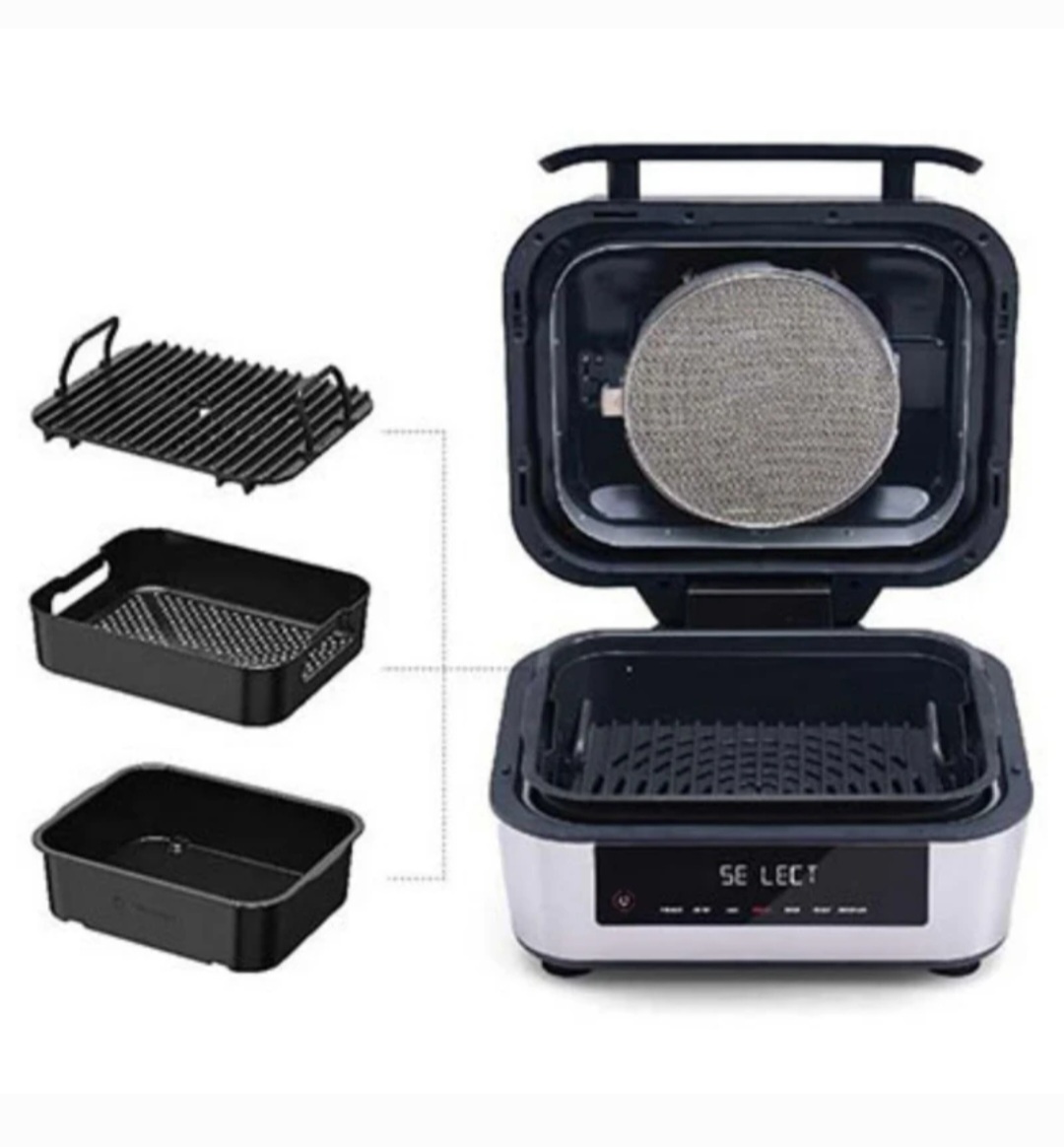 این دستگاه علاوه بر عملکرد سرخکن بدون روغن (هواپز)، قابلیت گریل حرفهای بدون دود را نیز دارد.