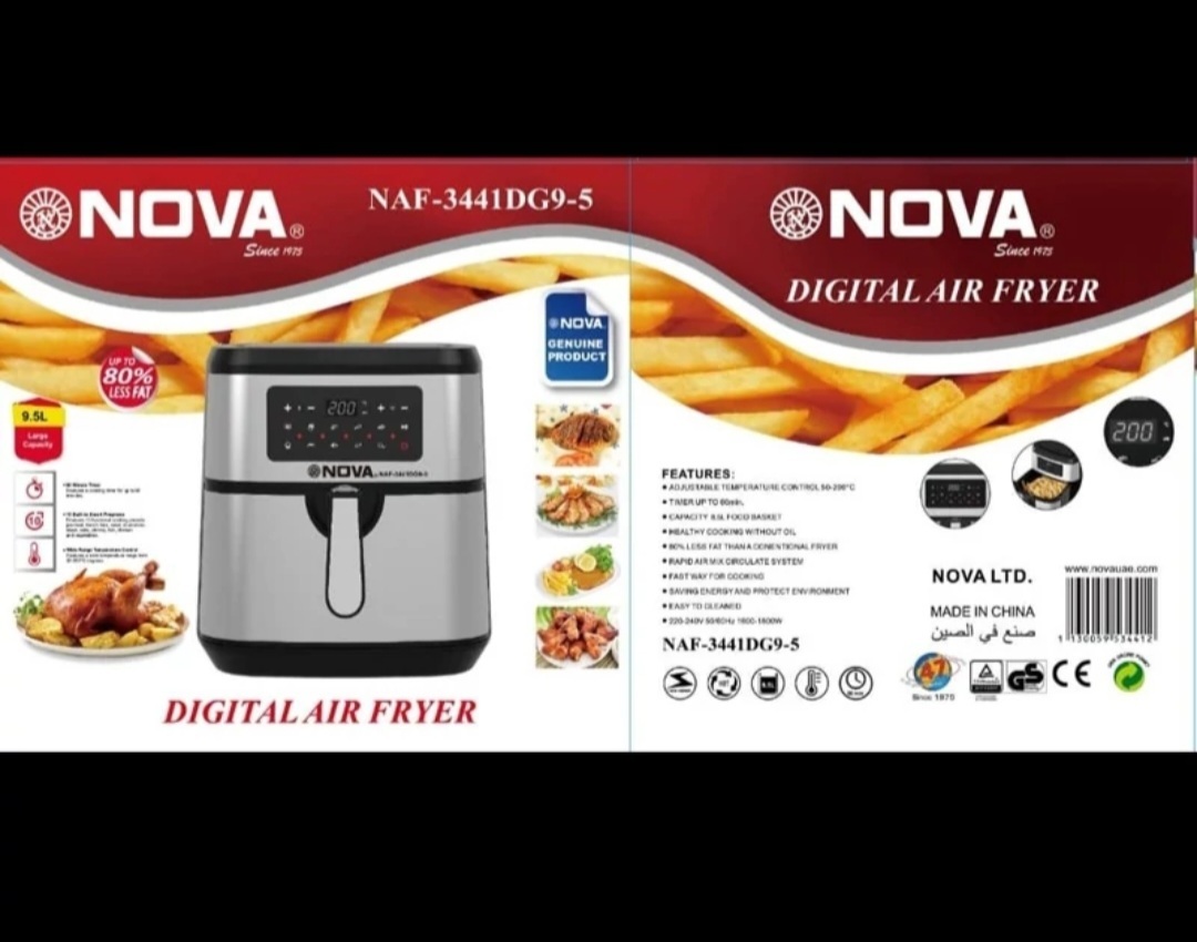 مشخصات کلی سرخ کن بدون روغن نوا مدل NAF-3441DG با ظرفیت ۹.۵ لیتر به شرح زیر است: